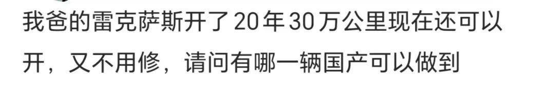 有老车主表示,雷克萨斯即使开了20年,也依旧耐造。而老广的终极梦想,就是没事喝喝茶,在周末的时候开着一部雷克萨斯到农家乐吃鸡。