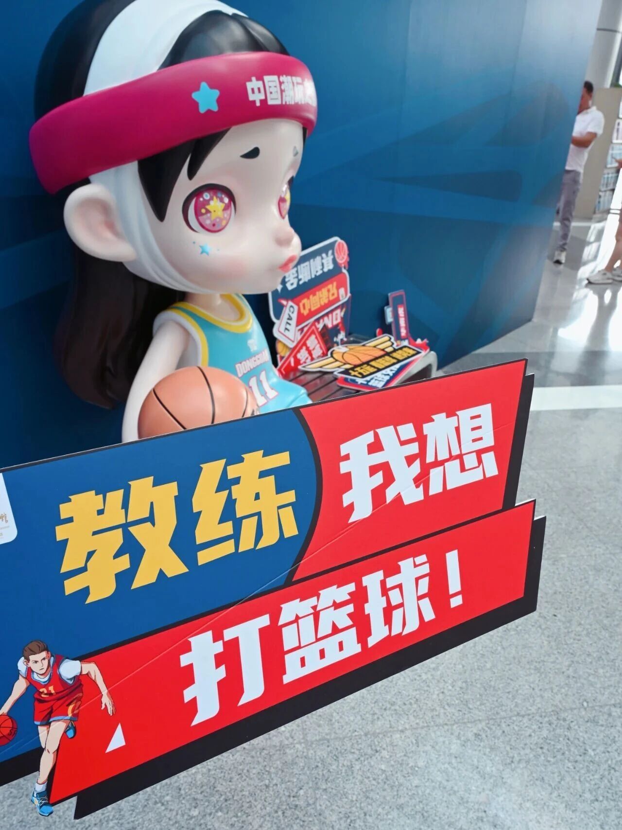 现场还有大小两个篮球架,大家看展览看得“手痒”了,还能现场投投篮
